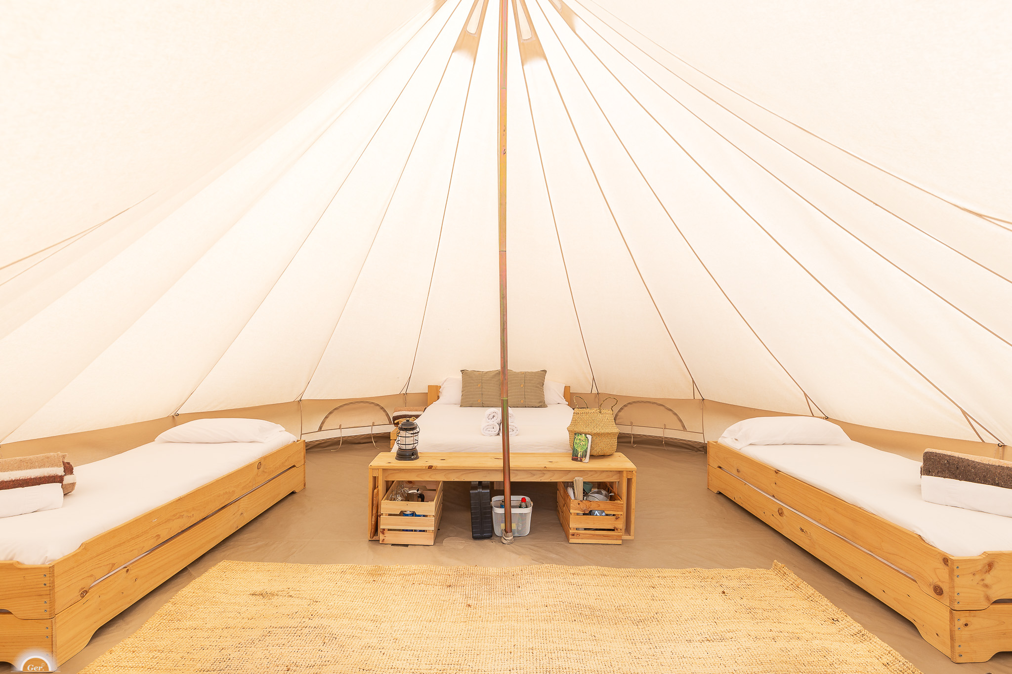 Tiendas estilo Bell Tent de 20 m² o 30 m², diseñadas con cuidado para ofrecerte una conexión única con la naturaleza, combinando comodidad y sostenibilidad.
